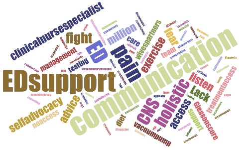 Among the issues: a lack of clinical nurse specialists (CNS), having to fight/self-advocate for proper care, poor communications from healthcare professionals, lack of support for partners, fear, pain, and access to drugs/care. But the one that stood out most when compiling the word cloud was sexuality (erectile dysfunction, ED) and psychosexual support which, here in the UK at least, is basically non-existent.
