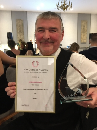 Talking about awards, I was delighted to also win a personal award as North West of England Male Champion Awareness Campaigner, and to be presented with a lovely trophy at a gala ball event.